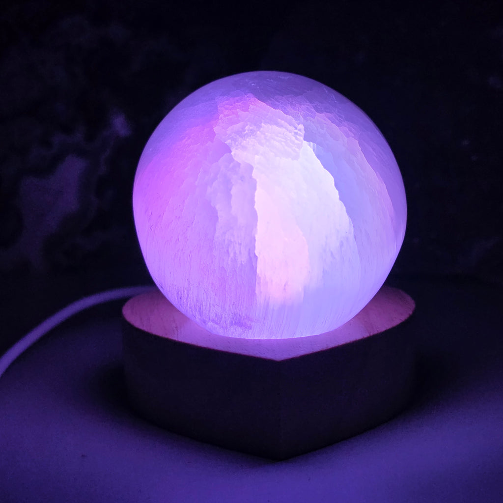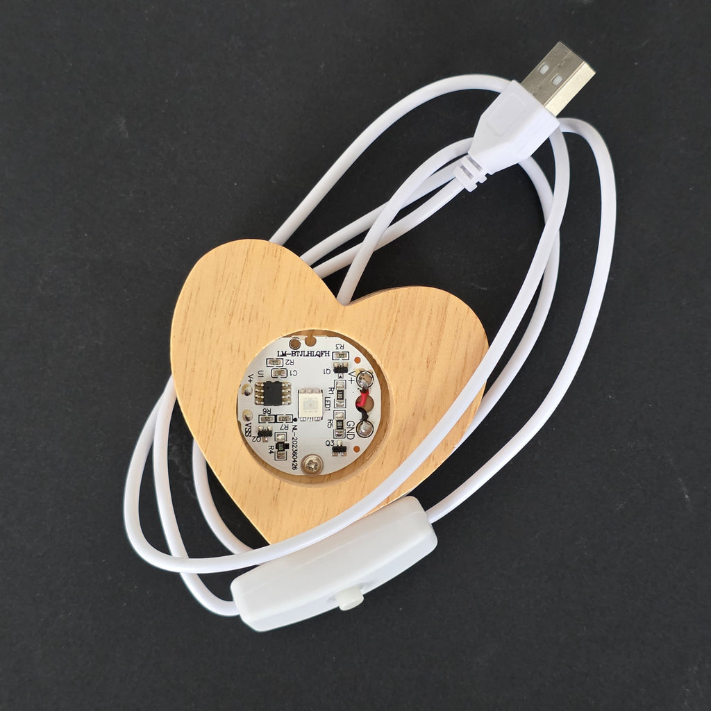 Description - Suport luminat LED din lemn pentru cristale | Heart