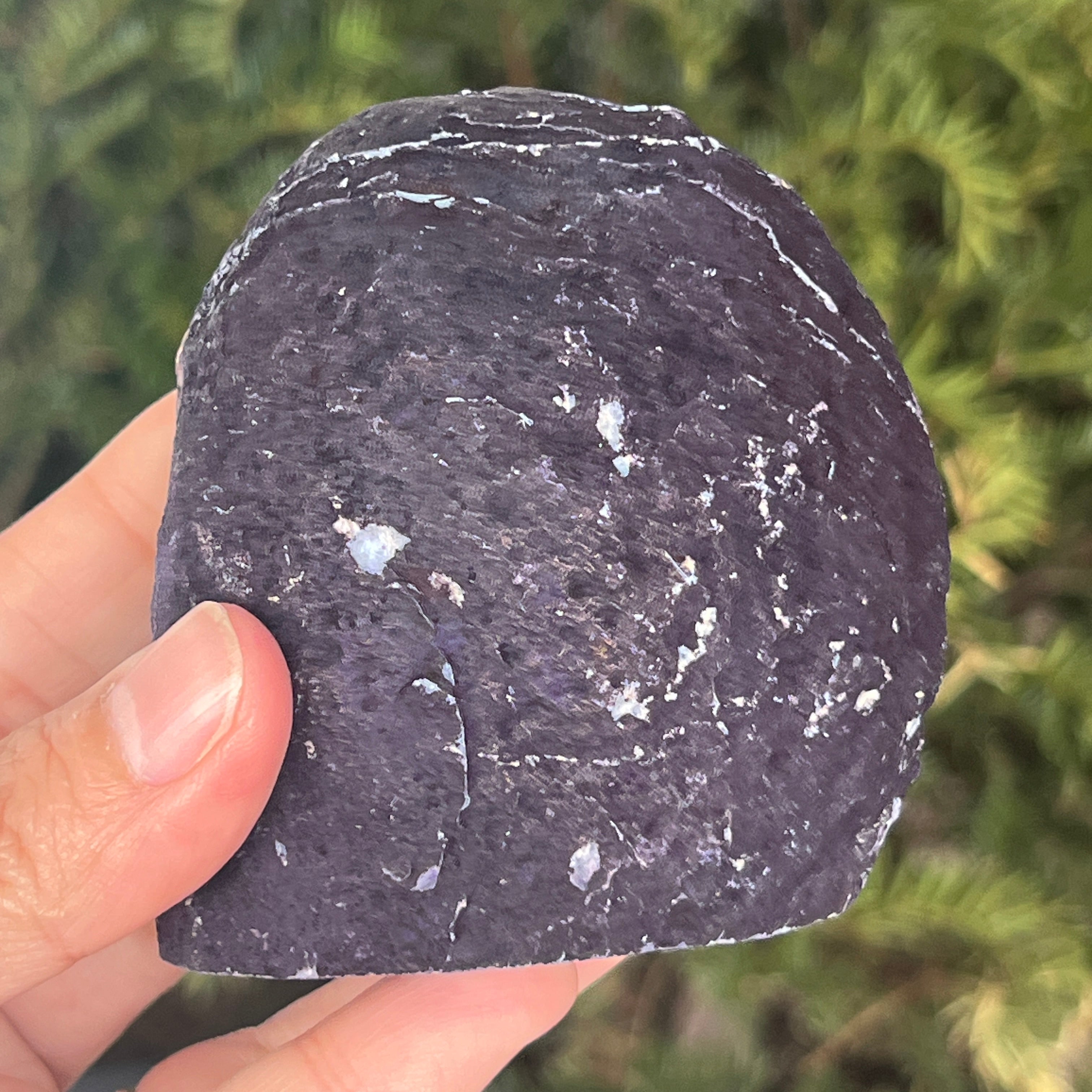 L'agate violette est une variété de calcédoine, une forme microcristalline de quartz caractérisée par sa structure stratifiée formée dans les cavités des roches volcaniques. La couleur violette met en valeur les bandes délicates du minéral et crée des contrastes spectaculaires. Elle est appréciée autant pour son esthétique particulière que pour sa symbolique liée au calme, à l'intuition et à la clarté mentale.