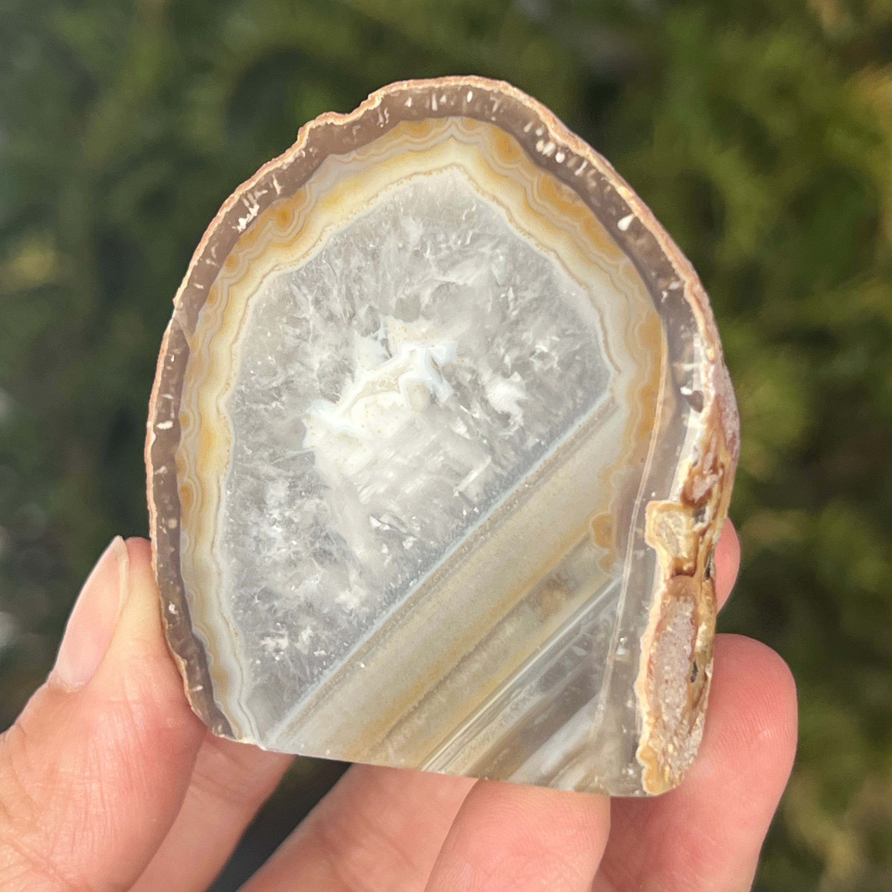 L’agate grise naturelle est une variété de calcédoine, une forme microcristalline de quartz caractérisée par de fines bandes formées naturellement dans des cavités volcaniques. Ses nuances neutres mettent en valeur la structure minérale authentique et l’élégance discrète de la pierre. Elle est appréciée à la fois pour son aspect naturel et pour la symbolique associée à la stabilité et à l’équilibre.