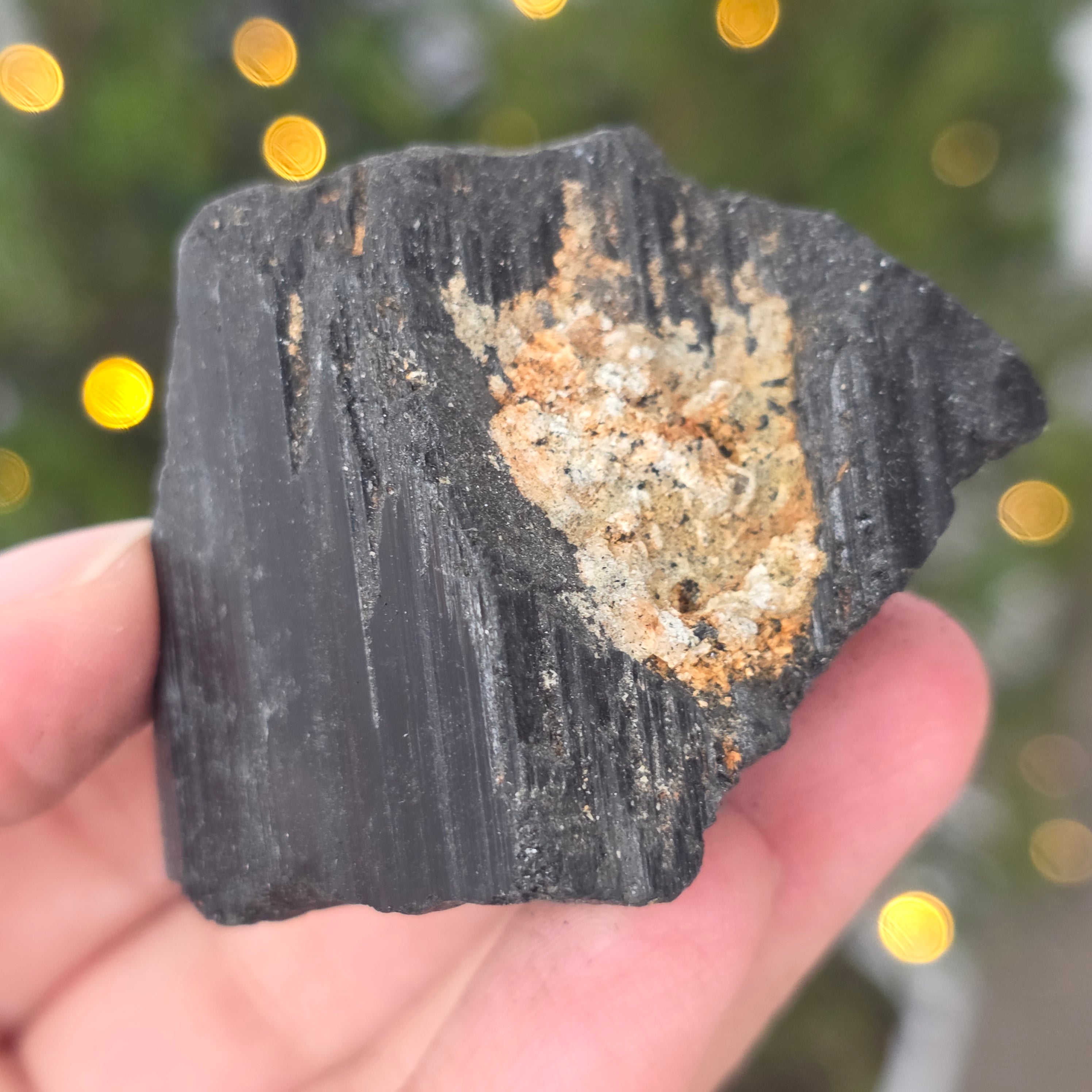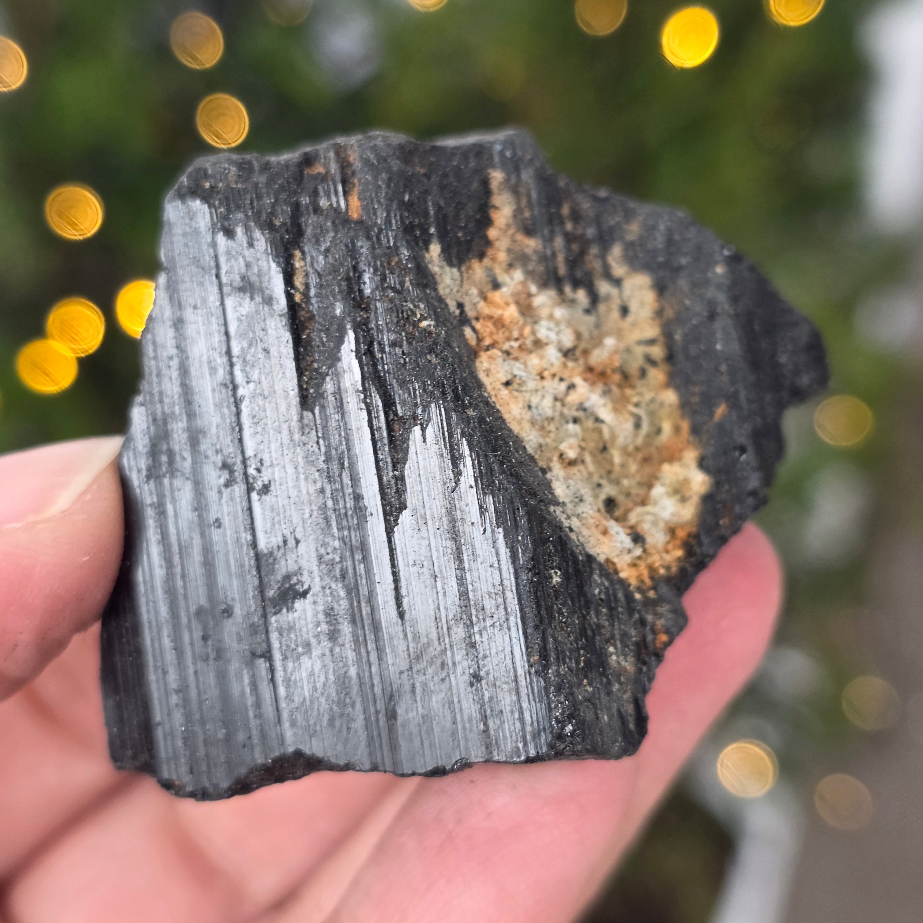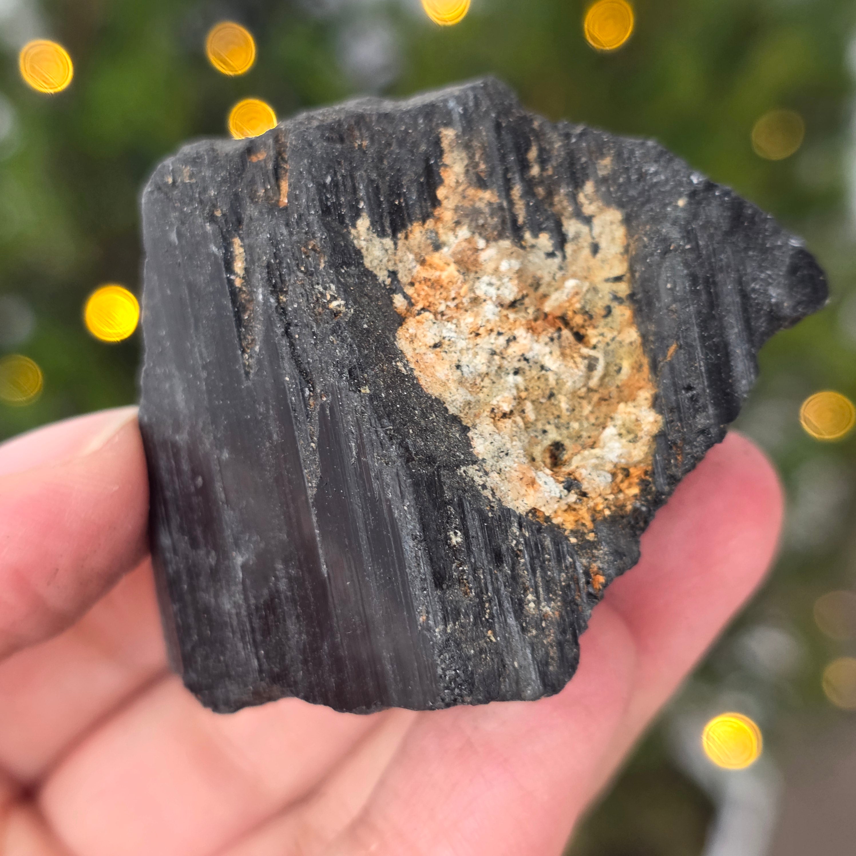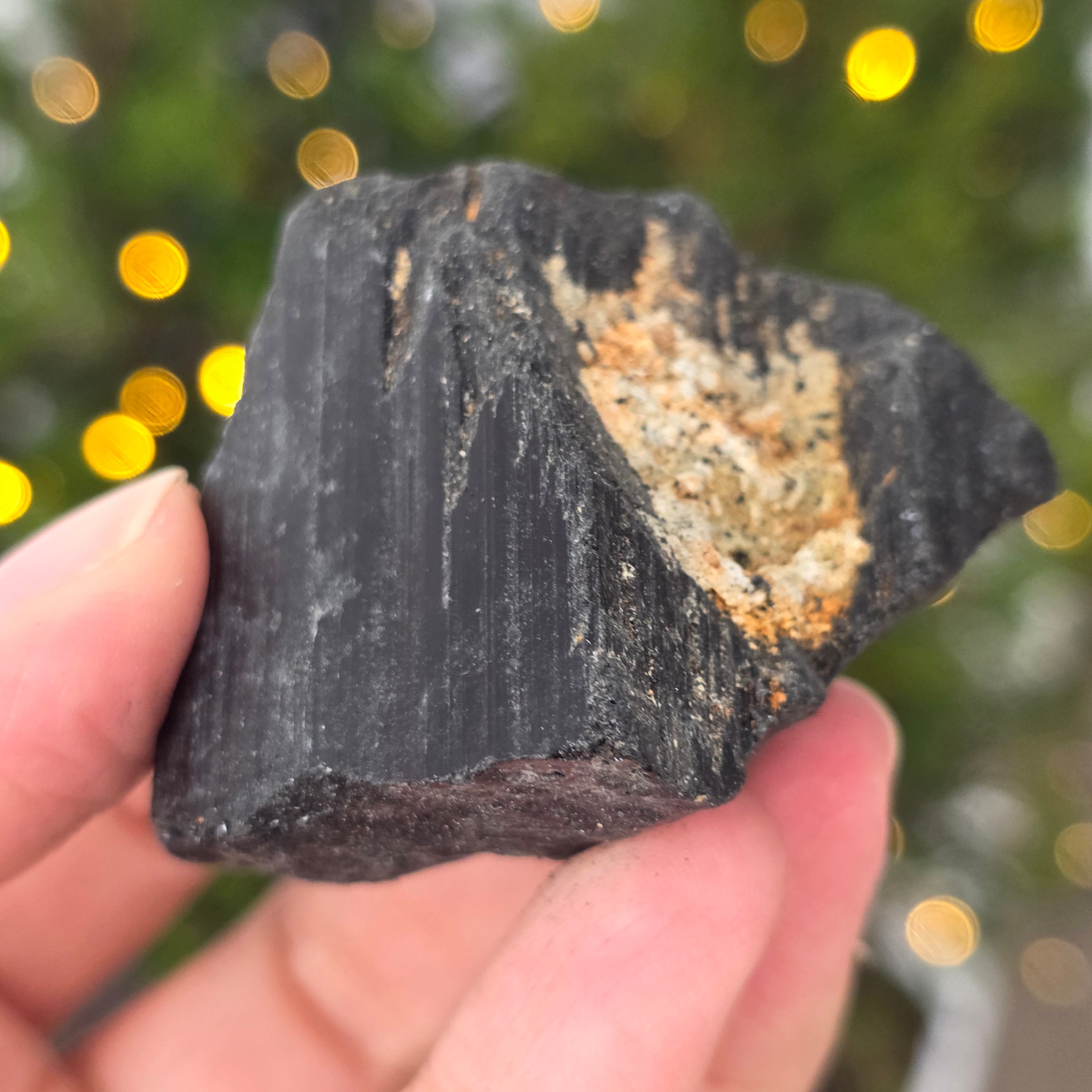 La tourmaline noire, également connue sous le nom de schorl, est constituée d'un mélange complexe de borosilicates et se présente sous diverses formes cristallines. C'est un minéral très dur et doté d'une grande résistance aux rayures et à l'usure.