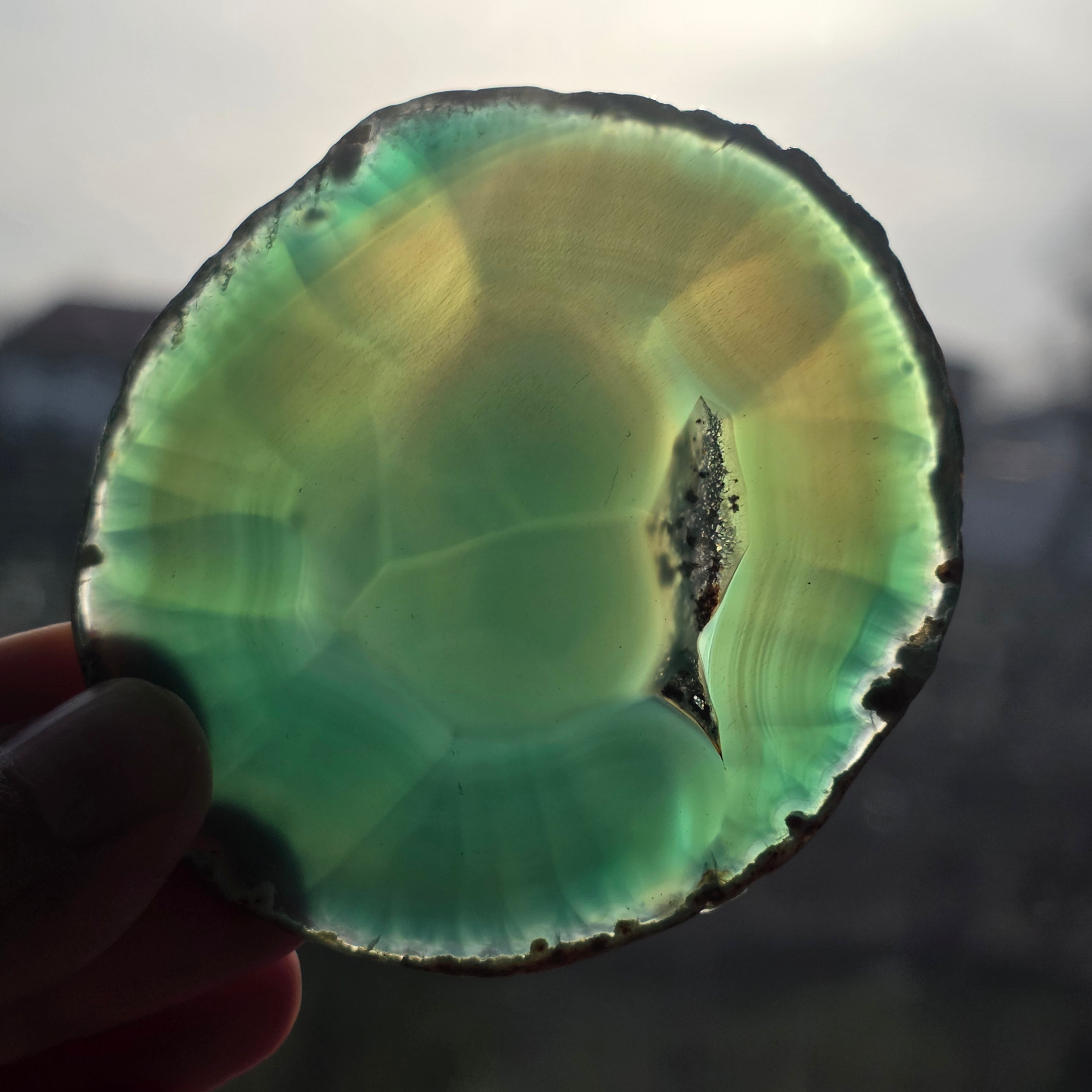 Tranche d'agate verte m6, dimension : 8,5 cm