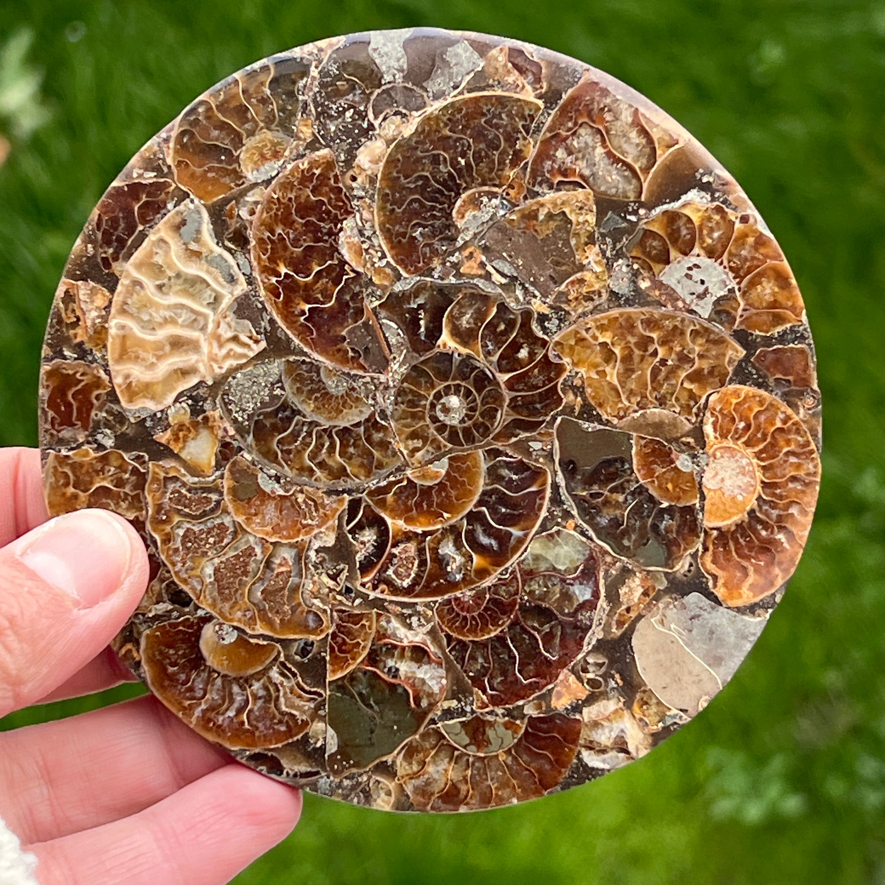 Tranche d'ammonite fossile 11,5 cm modèle 16