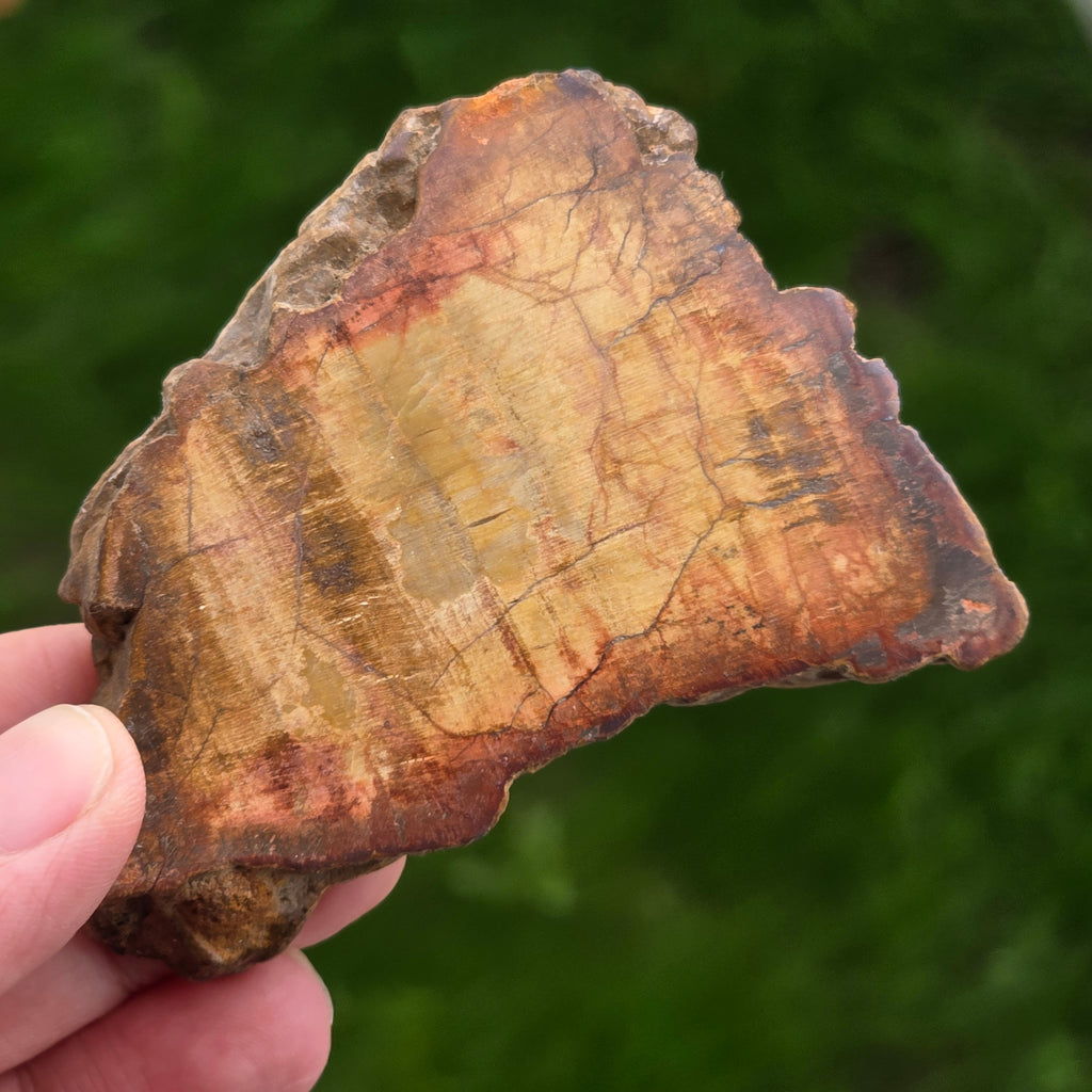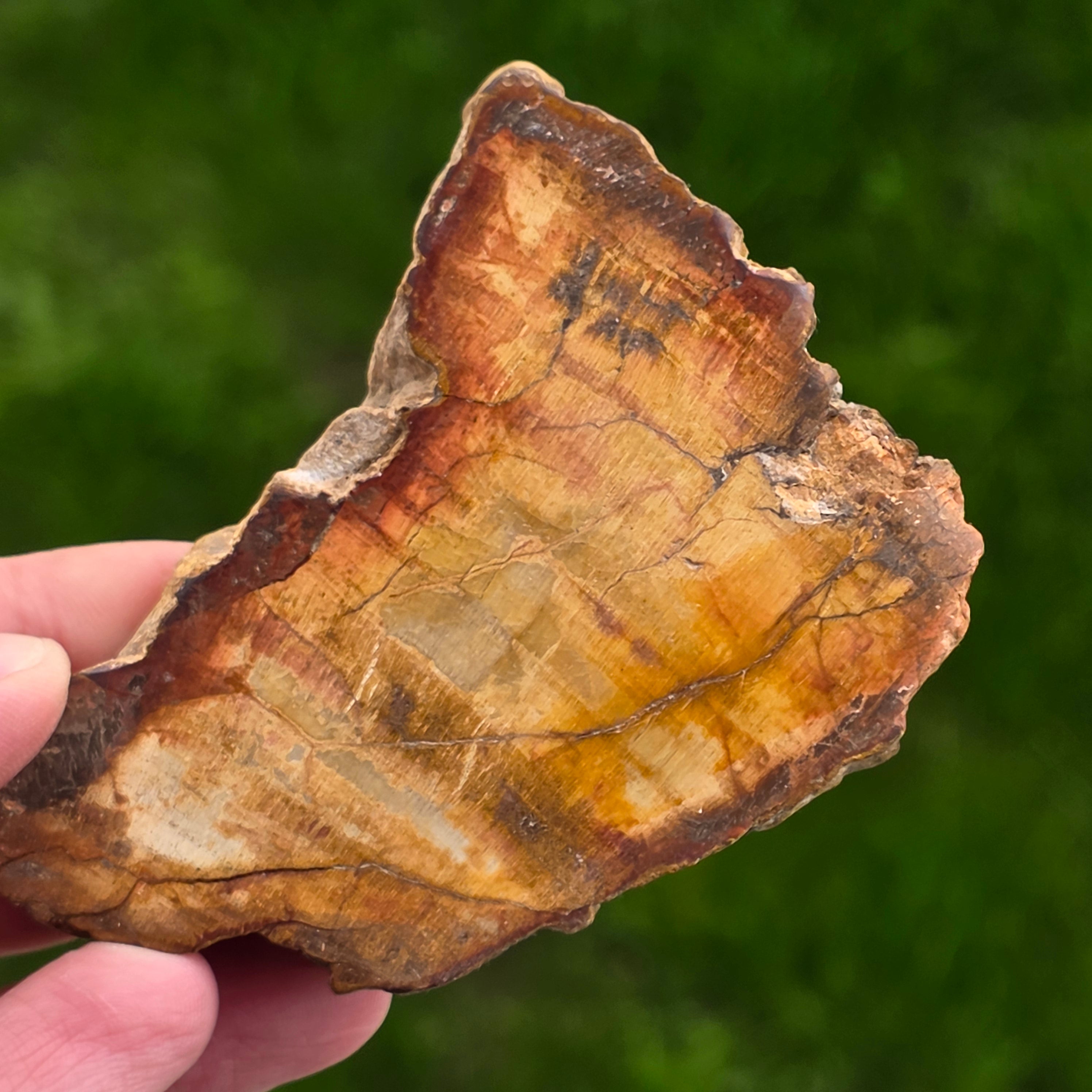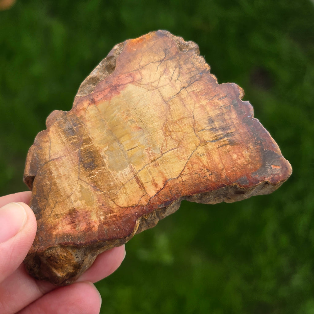 Au fil du temps, les couleurs du bois pétrifié se développent en raison des impuretés minérales: le fer ajoute des tons rouges ou oranges, le manganèse apporte des tons noirs et violets, et le cuivre peut introduire des accents verts ou bleus. Bien qu'il semble en bois à première vue, cette pierre est complètement minéralisée, ayant un Dureté mohs d'environ 6,5 - 7, similaire à celui du quartz.