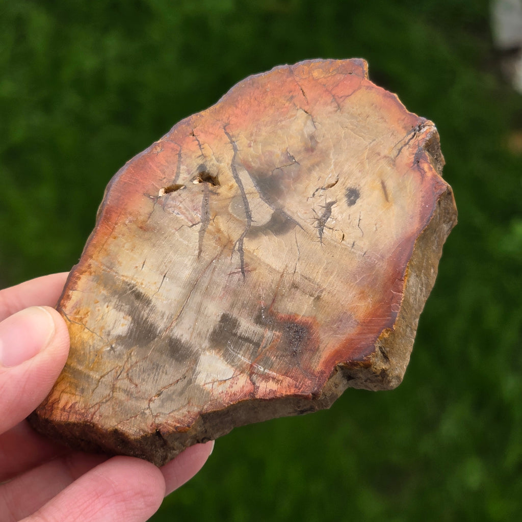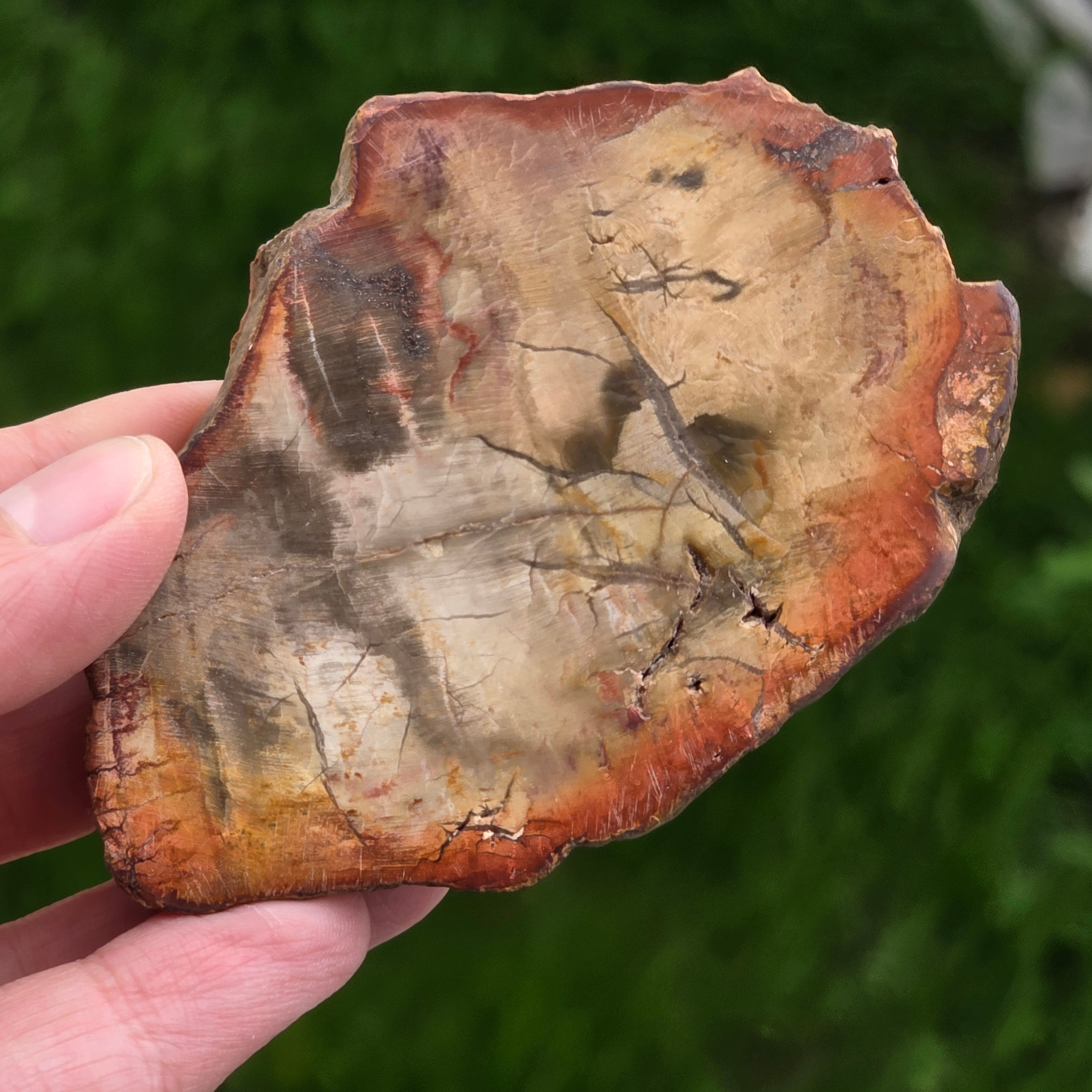Au fil du temps, les couleurs du bois pétrifié se développent en raison des impuretés minérales: le fer ajoute des tons rouges ou oranges, le manganèse apporte des tons noirs et violets, et le cuivre peut introduire des accents verts ou bleus. Bien qu'il semble en bois à première vue, cette pierre est complètement minéralisée, ayant un Dureté mohs d'environ 6,5 - 7, similaire à celui du quartz.