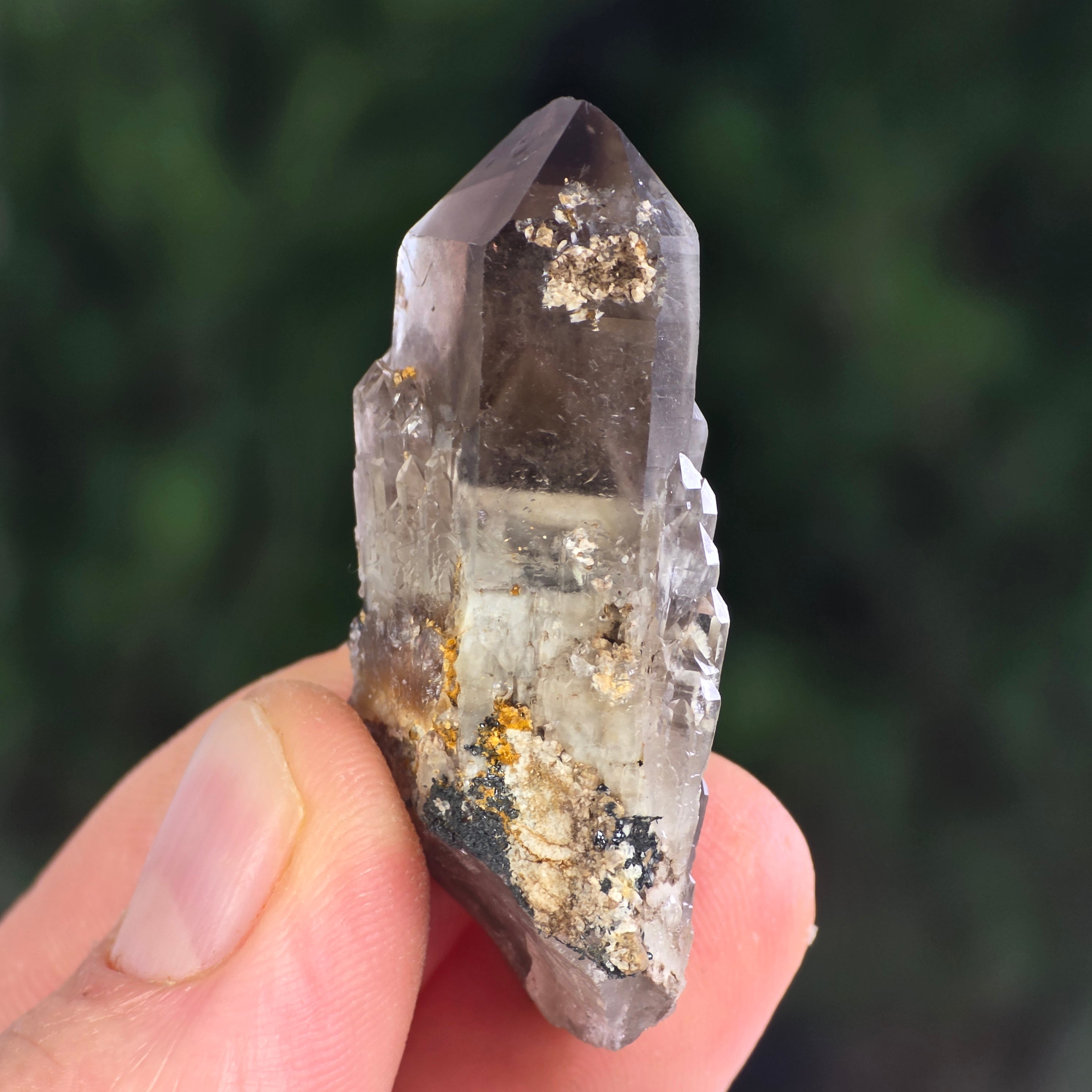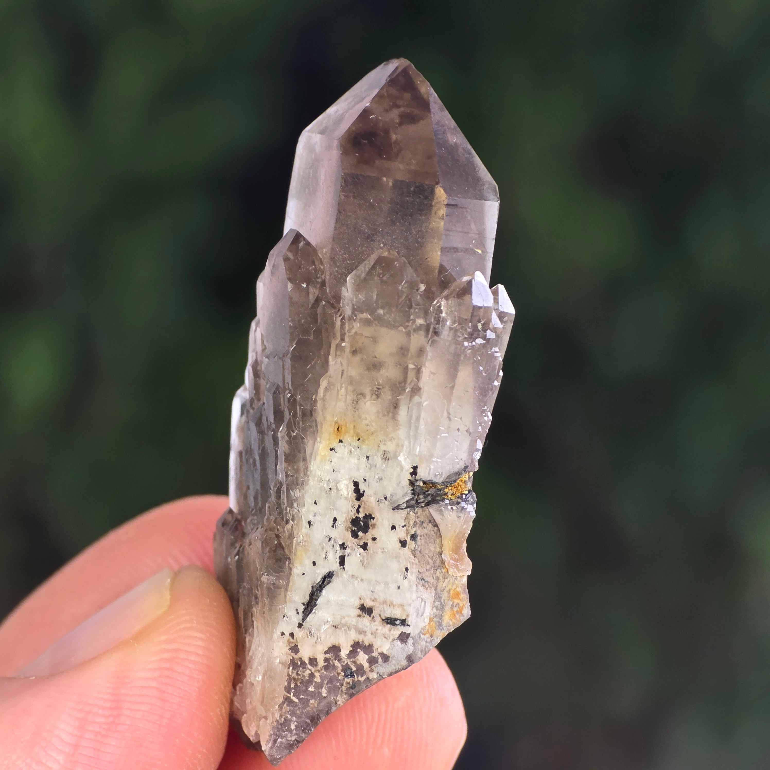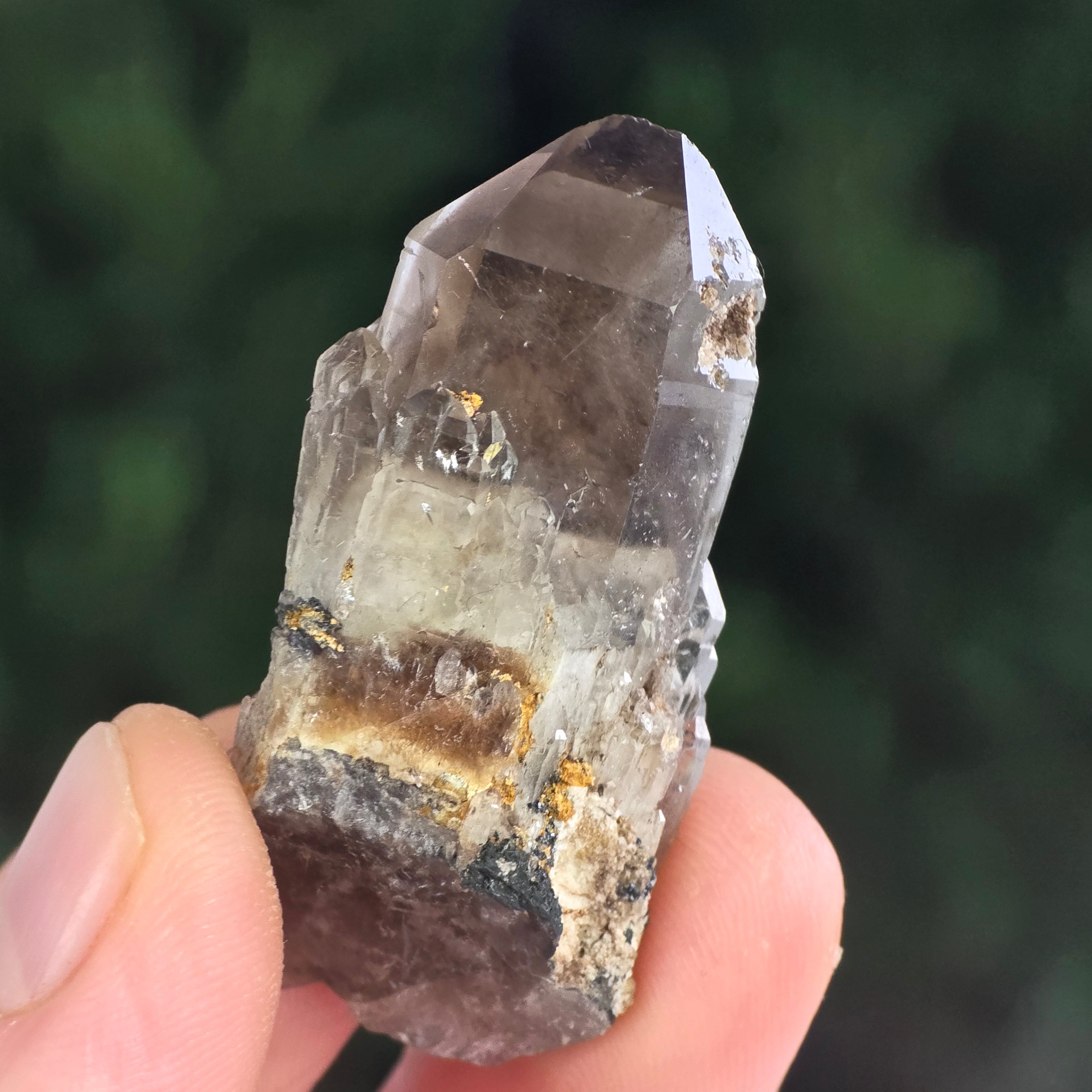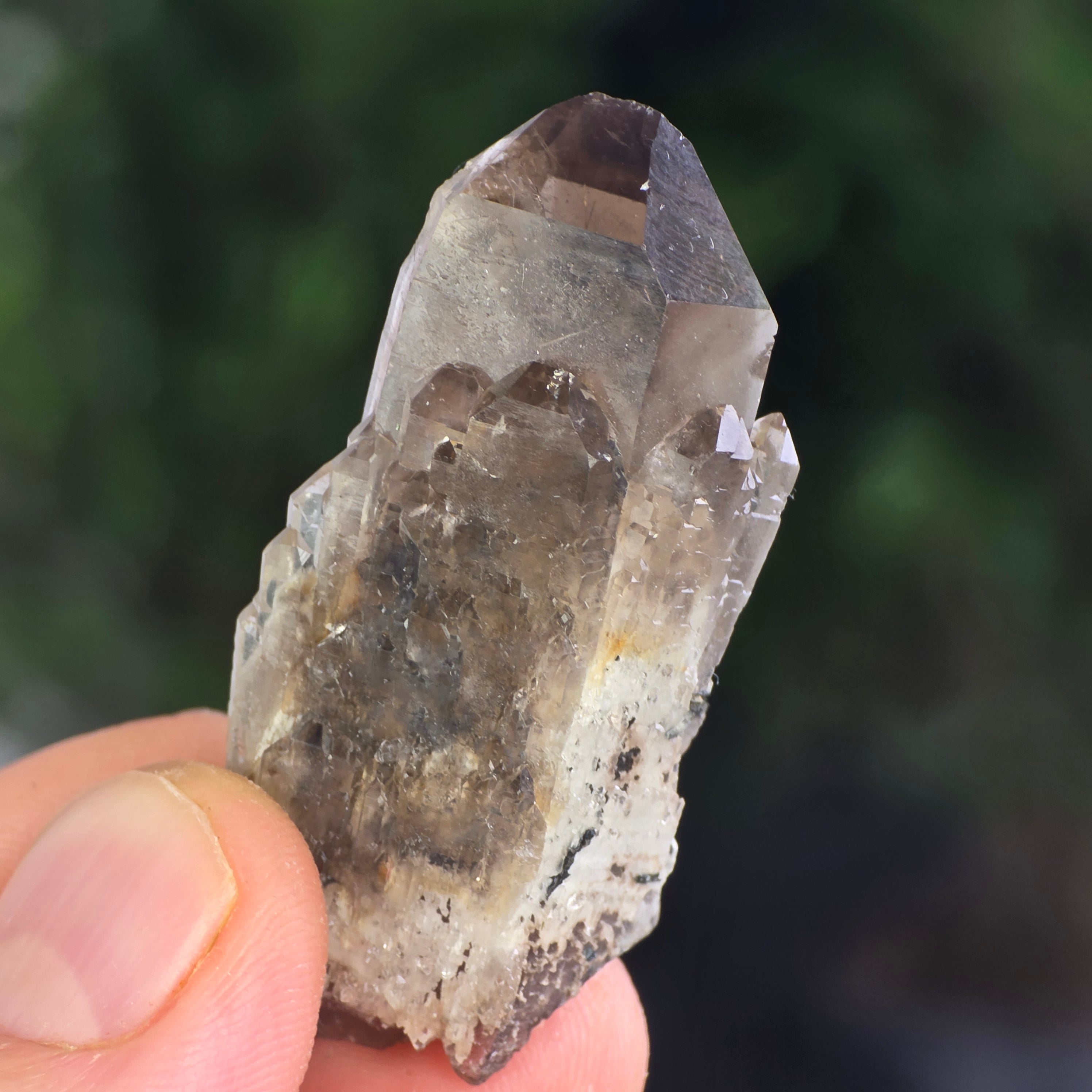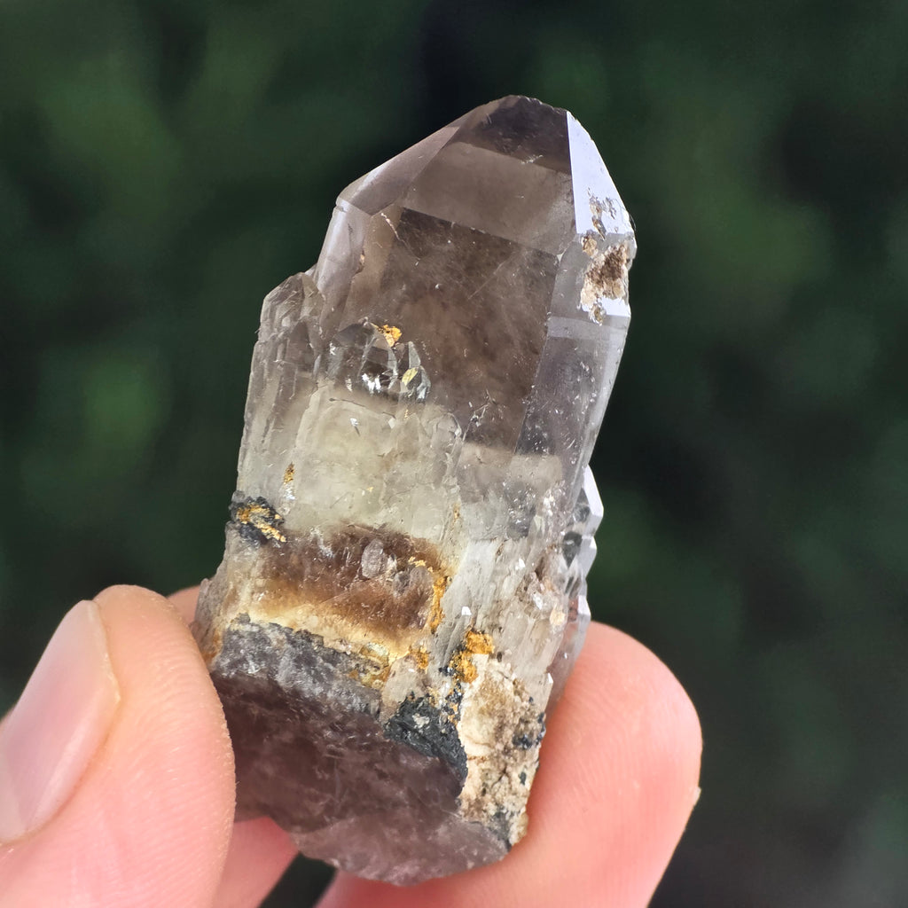 Cuarțul fumuriu este una dintre cele mai elegante și misterioase varietăți de cuarț natural, recunoscută pentru nuanțele sale calde – de la gri translucid până la brun închis, uneori cu tente aproape negre. Formarea sa are loc în adâncurile scoarței terestre, unde radiațiile naturale modifică structura cristalului de cuarț transparent, dând naștere acestui ton fumuriu distinctiv. Fiecare exemplar este o mărturie a răbdării geologice, un cristal format lent, în condiții de presiune și temperatură perfect echilibrate.
