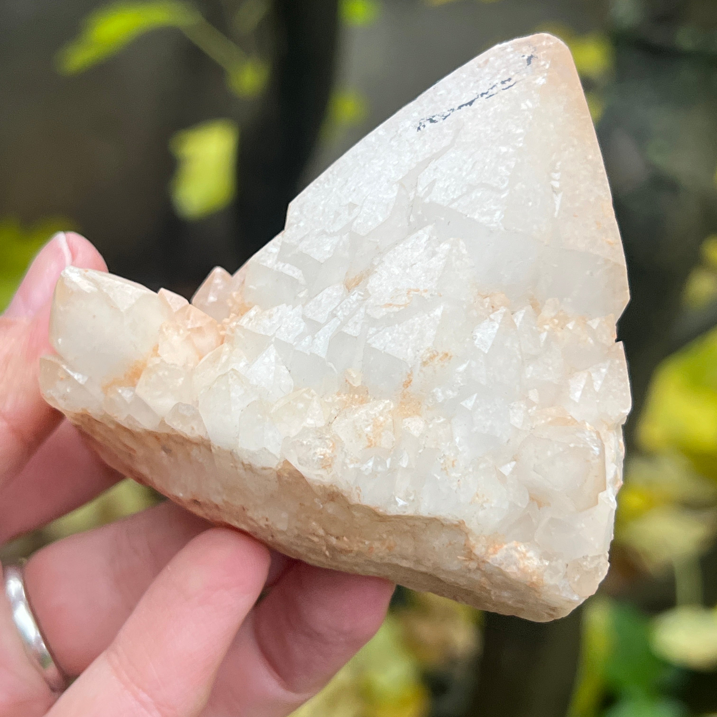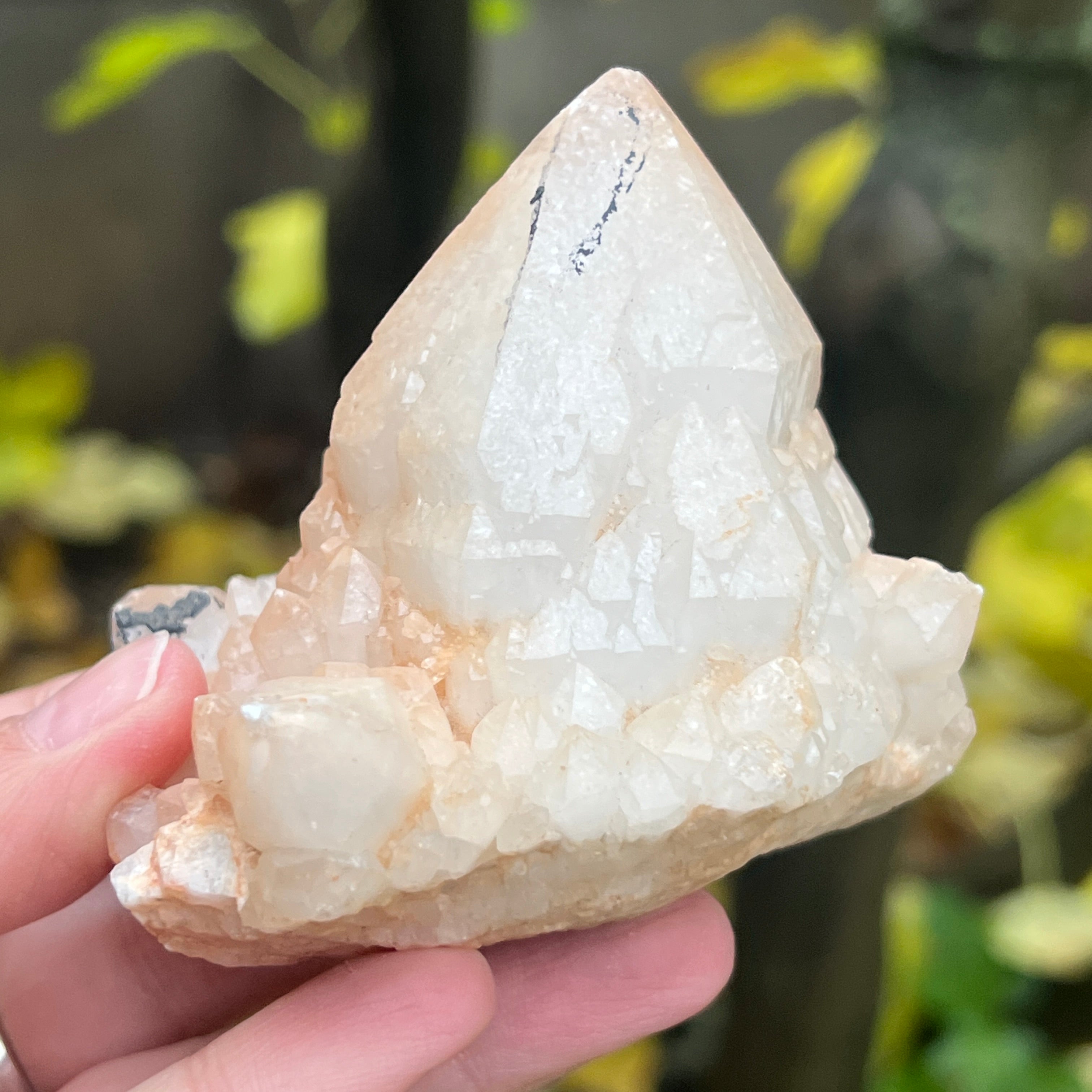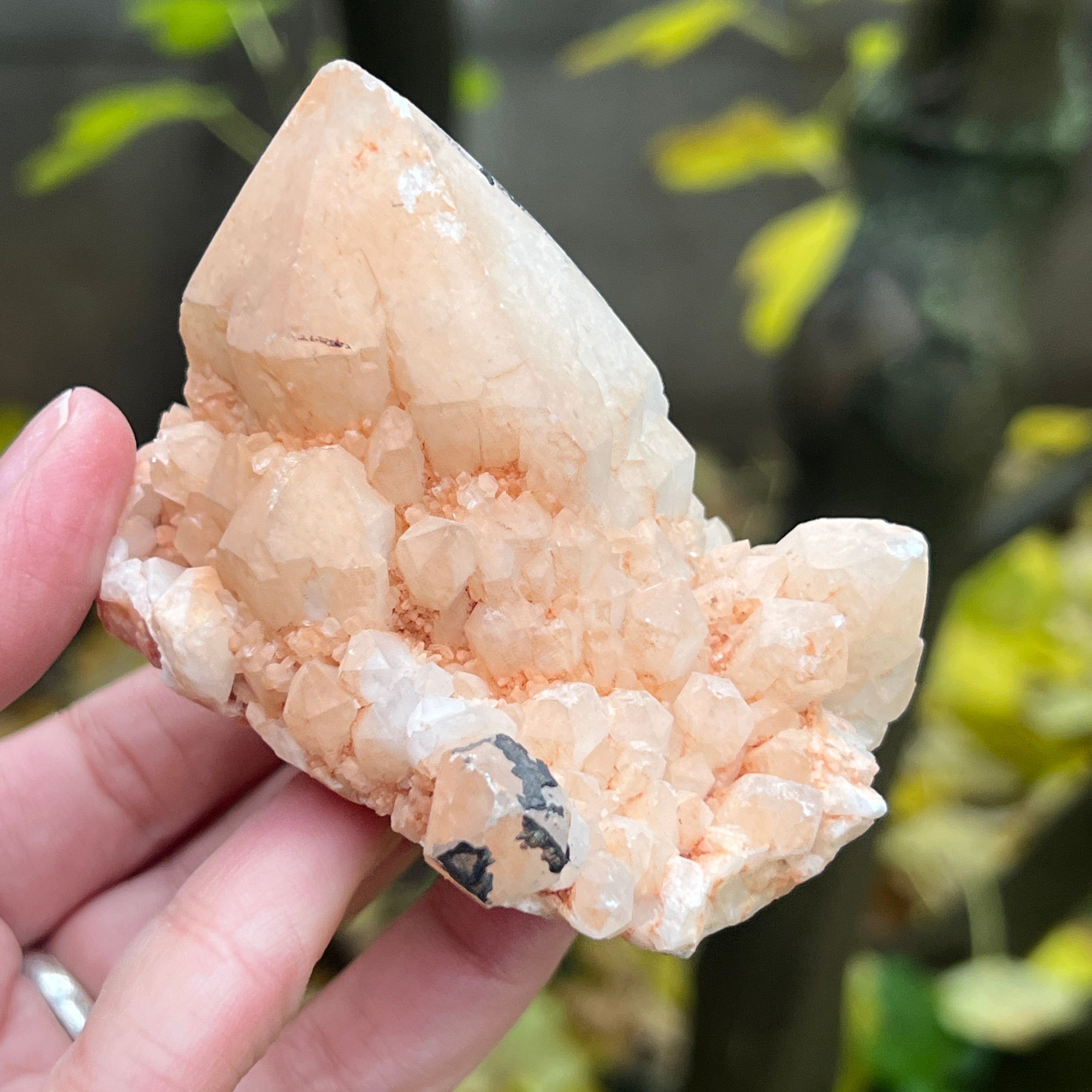 Un vârf care pare sculptat de lumină însăși. Cuartul celest, cunoscut și ca cuart lumânare, îmbină forța unui cristal de cuarț cu blândețea și strălucirea unei flăcări interioare. Forma sa unică, asemănătoare unui ananas cristalin, emană o energie de purificare profundă și de conectare cu planurile superioare ale conștiinței.