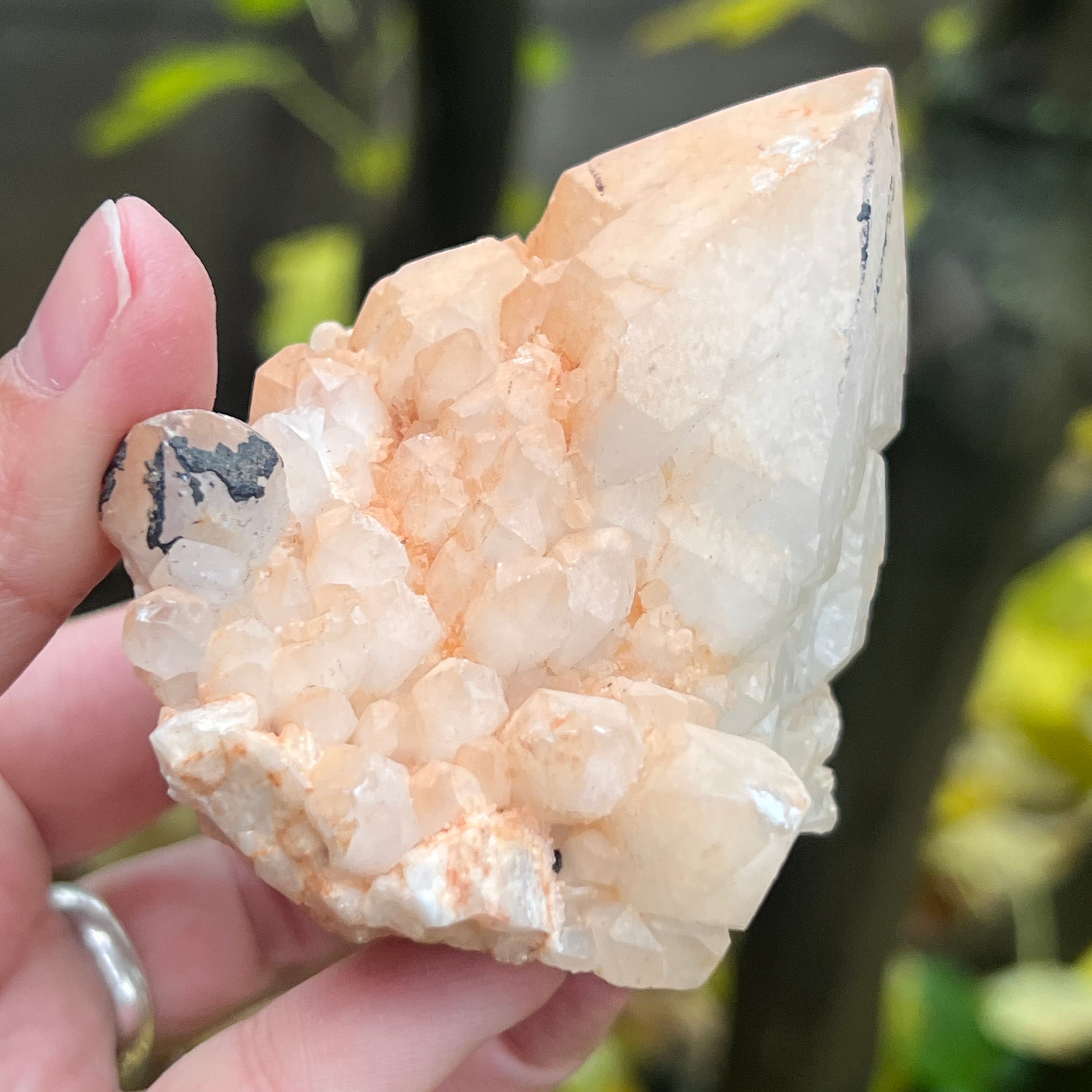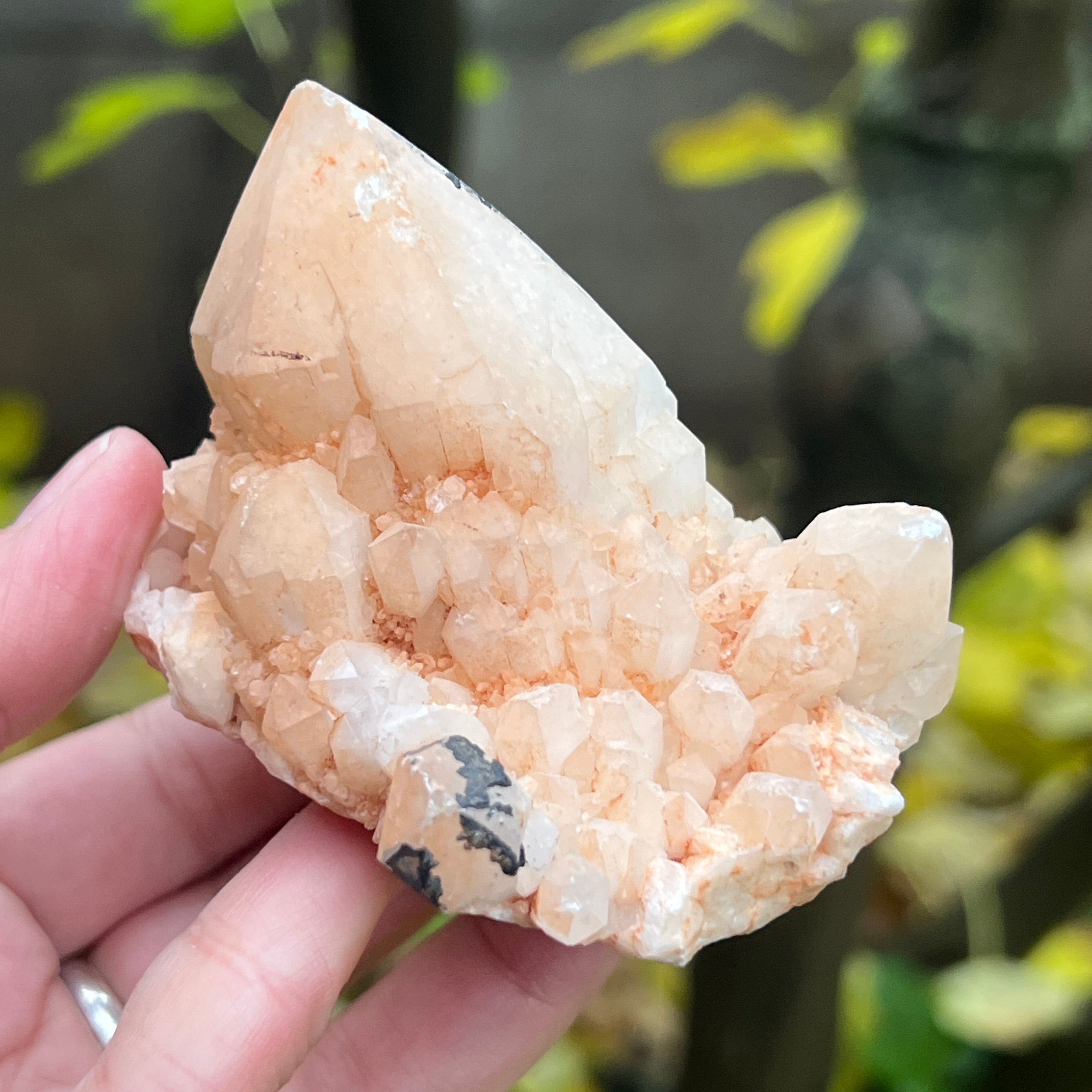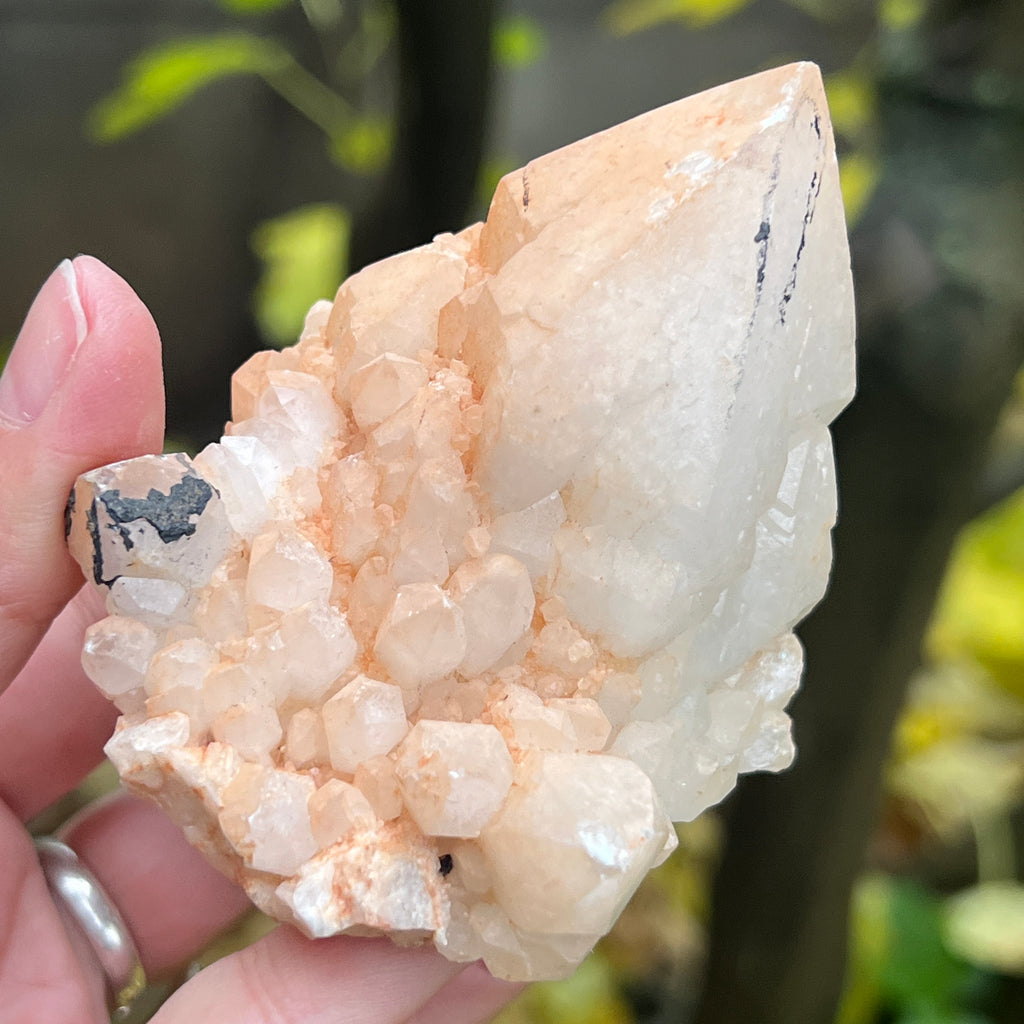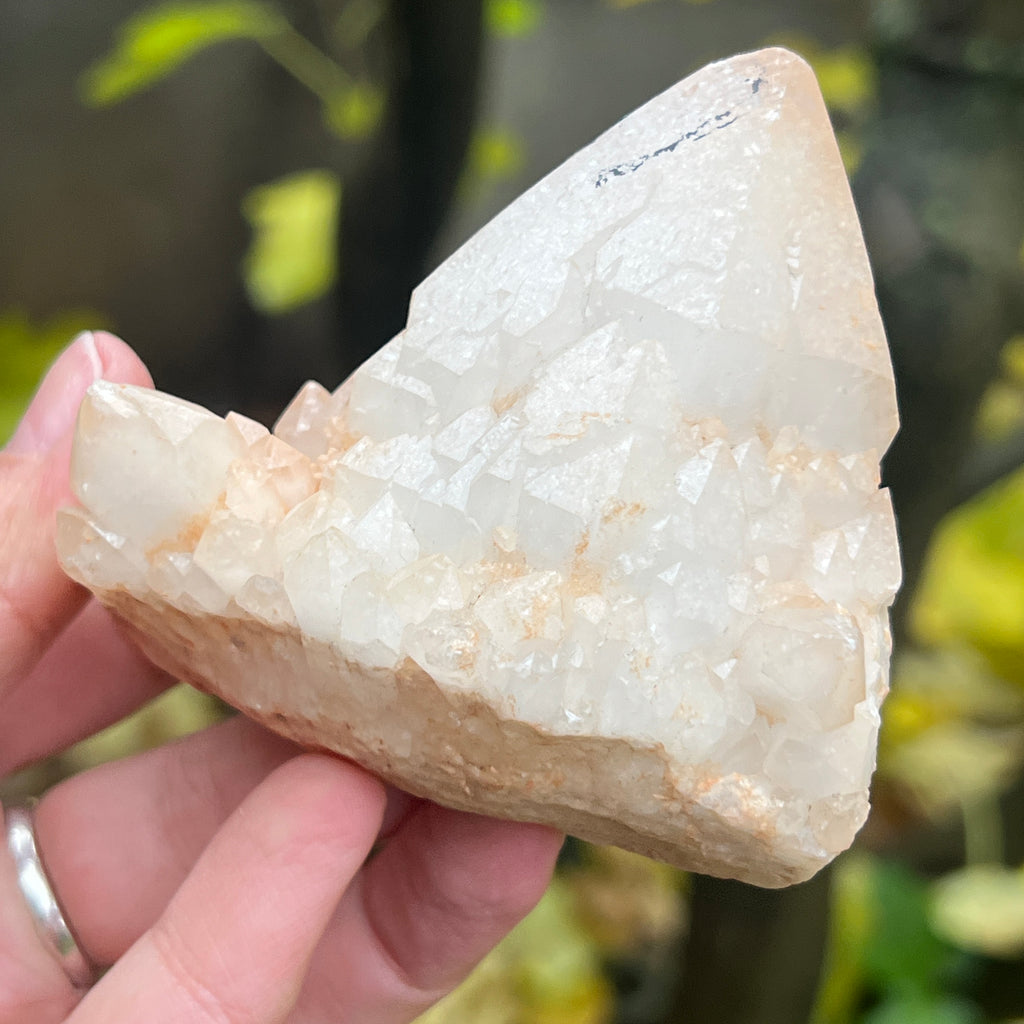 Un vârf care pare sculptat de lumină însăși. Cuartul celest, cunoscut și ca cuart lumânare, îmbină forța unui cristal de cuarț cu blândețea și strălucirea unei flăcări interioare. Forma sa unică, asemănătoare unui ananas cristalin, emană o energie de purificare profundă și de conectare cu planurile superioare ale conștiinței.