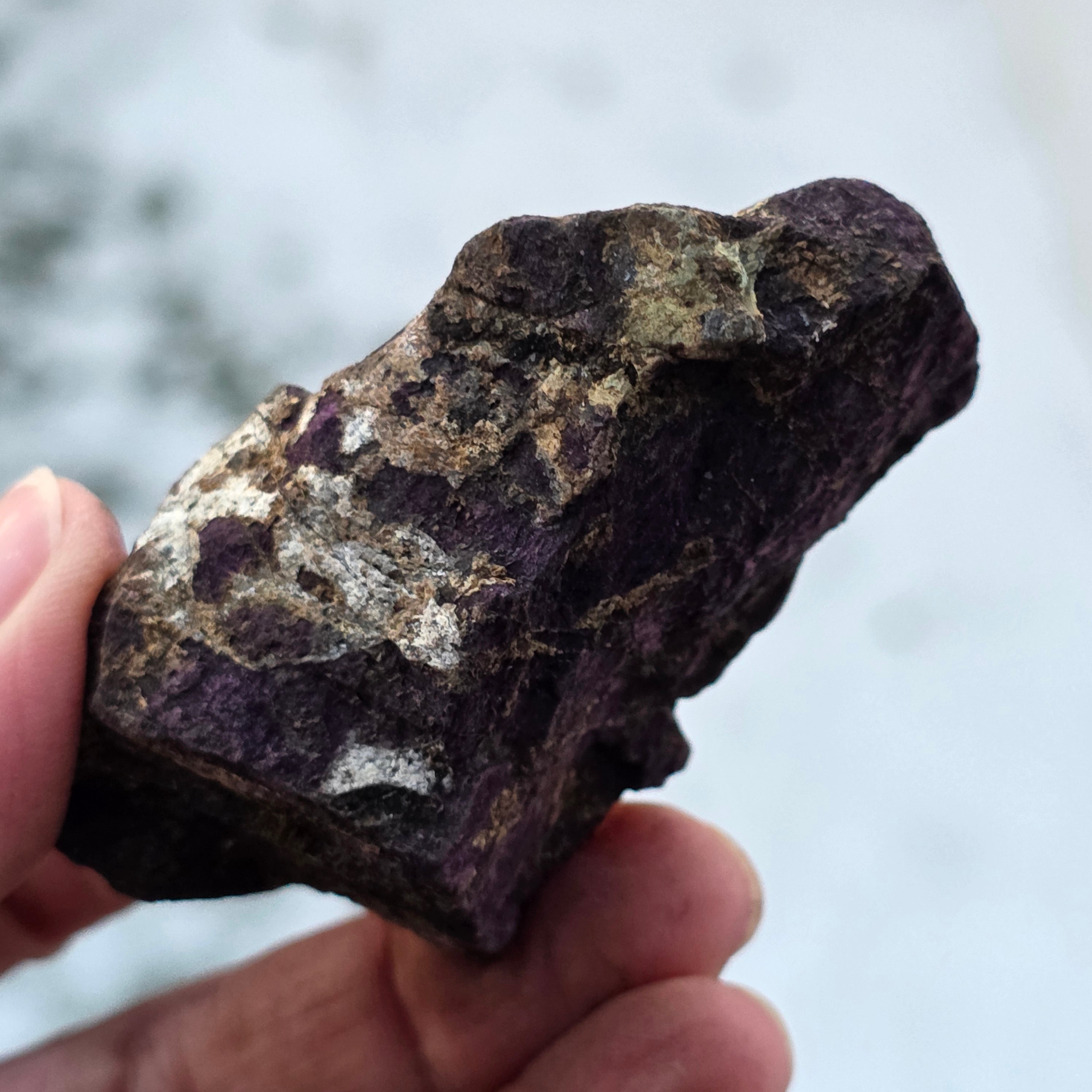 La purpurite est composée d’un minéral appelé « purpurite », qui est un phosphate de manganèse et de fer. La purpurite peut avoir une texture granuleuse et varier dans l’intensité de sa couleur.