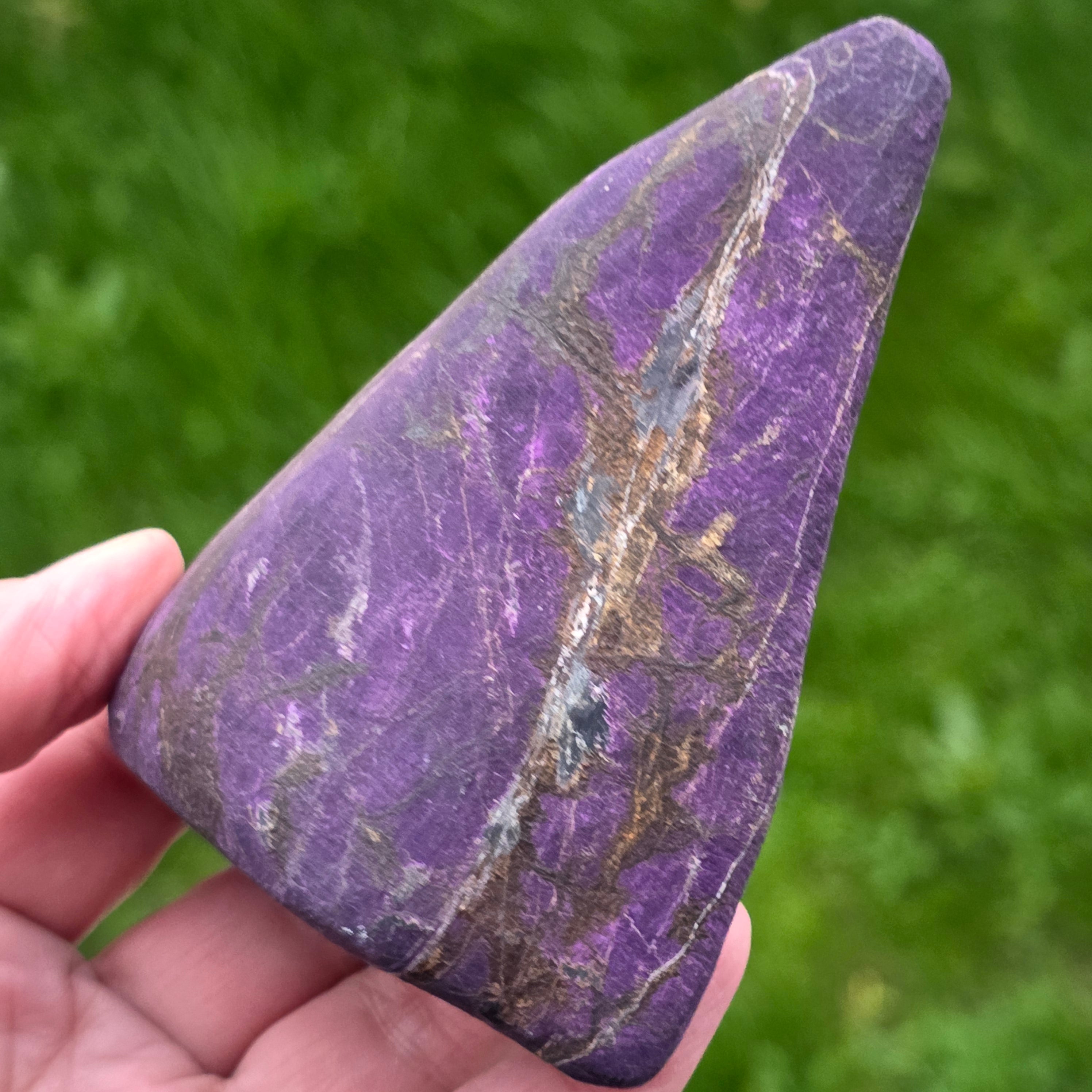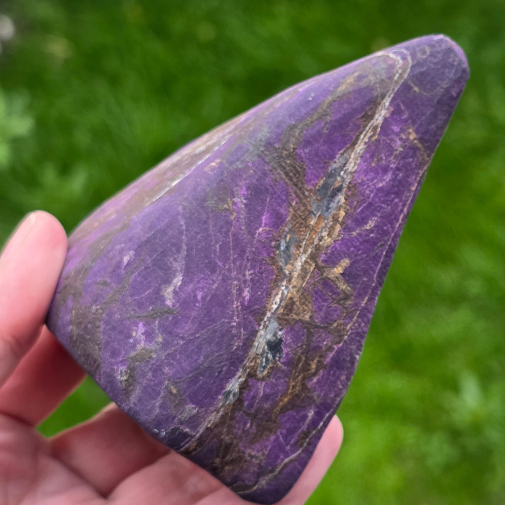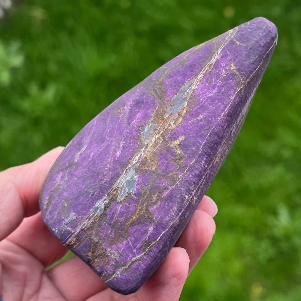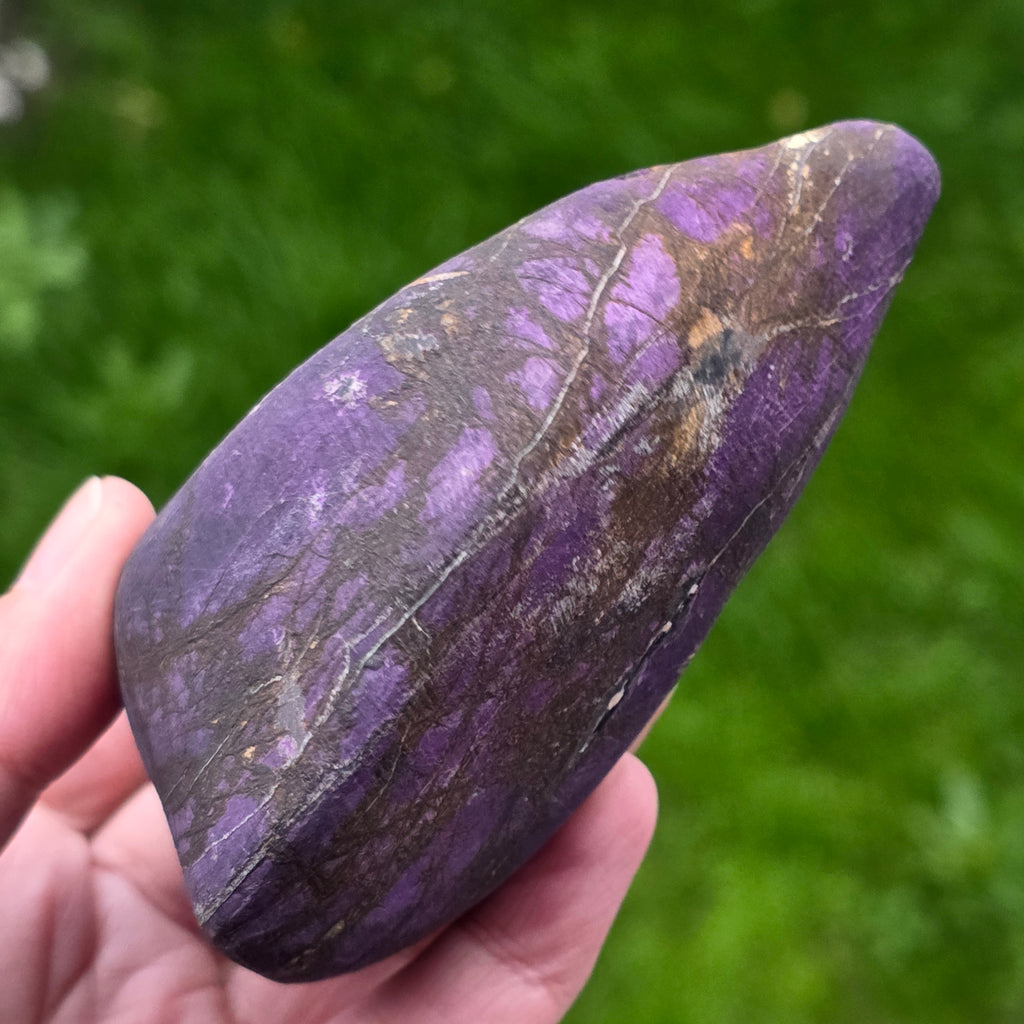Le violet est souvent associé au développement de la conscience spirituelle, à la méditation et à la compréhension du soi profond. On dit que cette pierre soutient les qualités introspectives et stimule la créativité.